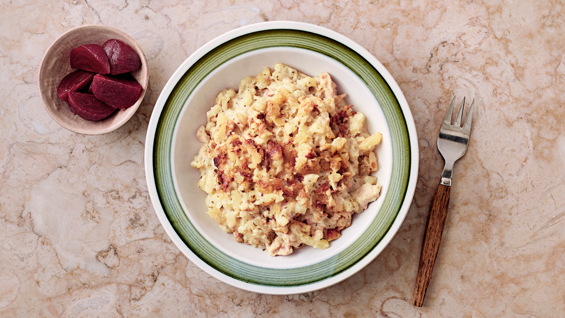 Peruna (Suomi), suomalainen kerma, broileri 17 % (Suomi), sipuli, Snellmanin Kunnon pekoni 4 % (porsaanliha (Suomi), suola, sokeri, silava, säilöntäaine (E250)), jodioitu suola, persilja, valkosipuli, perunahiutaleet, sokeri, mustapippuri. Tuote saattaa sisältää luuta.