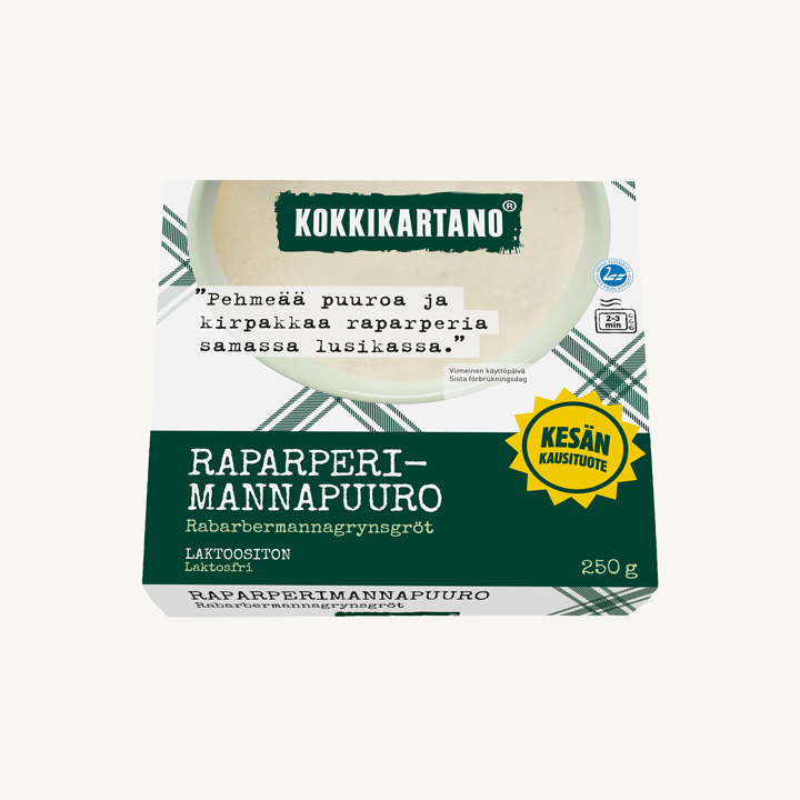 Vesi, suomalainen kerma, raparperi 16 % (Suomi), sokeri, mannasuurimo 6 % (vehnä (Suomi)), vaniljasokeri, jodioitu suola.